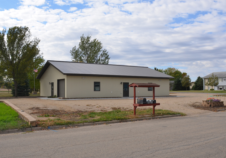 History: After many donations, some small grants, and a lot of hard work, $150,000 was raised to construct a new 60 by 27 foot building in 2014. A committe of 7 was responsible for most of the planning and work. LaVerne Honl did all the legal work to get the project ready for the building to begin. The design of the building was done by their own architect committee, and the starting structure was put up by Foltz Building. Kackman and Smykowski worked on the cement part while Don Sem did all the sheetrocking, and David Puetz did the painting. Volunteers from the community then went to work to finish the building. Besides the committee members, there were many others helping, including Shelby Dallmann, Bobb Haas, Kevin Oster, Rick Jorgenson, Arlen Willprecht, Werner Veil, Kellen Jorgenson, Louis Siemieniewski, to name a few. LaVerne Honl did the final woodwork finishing.